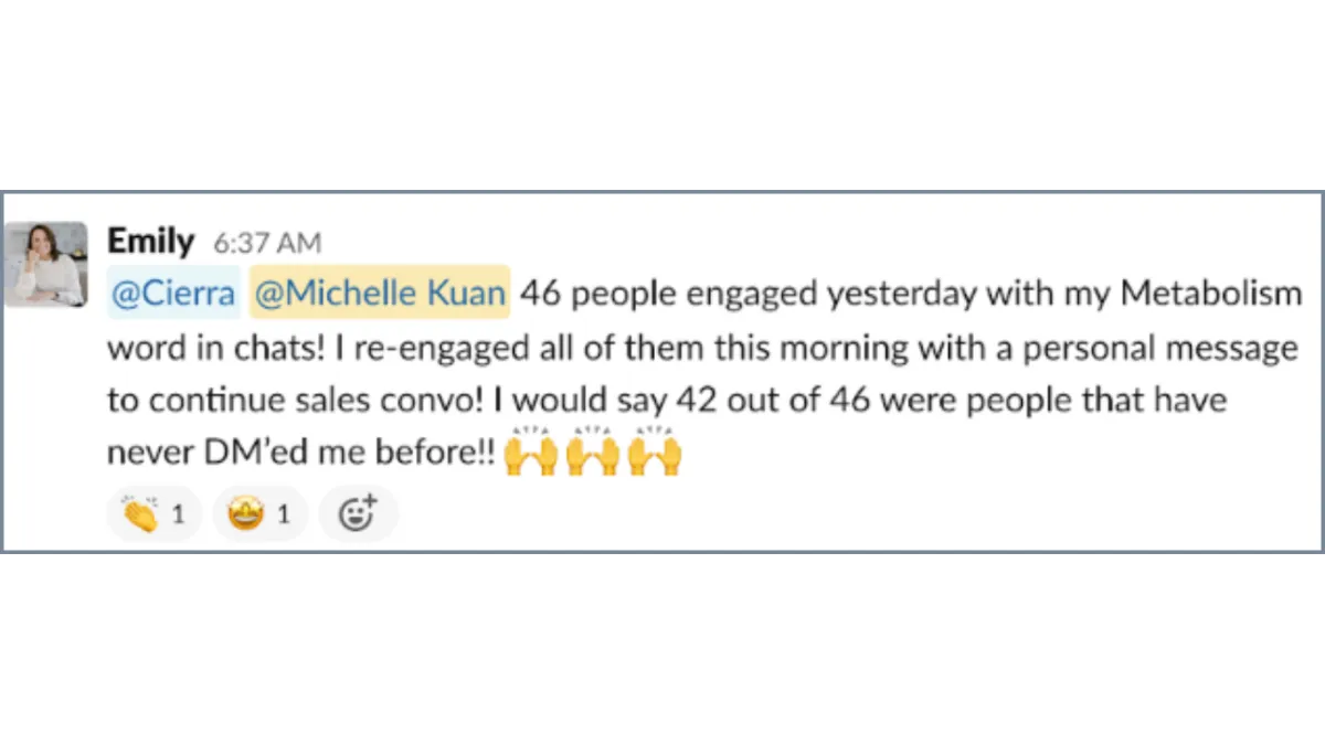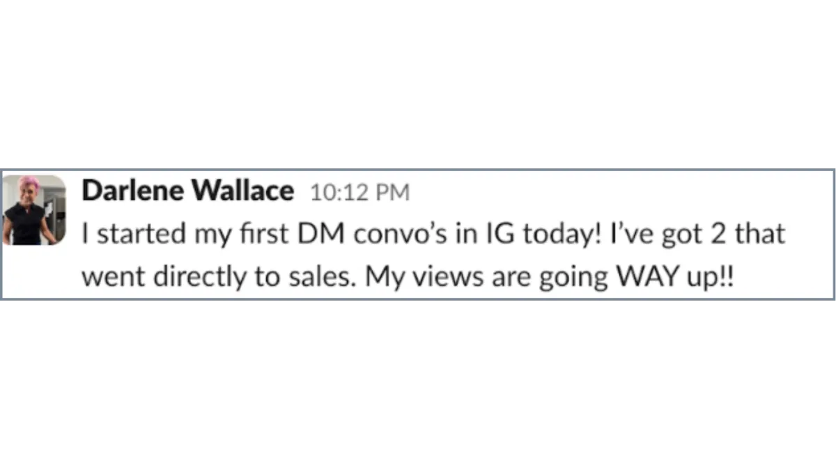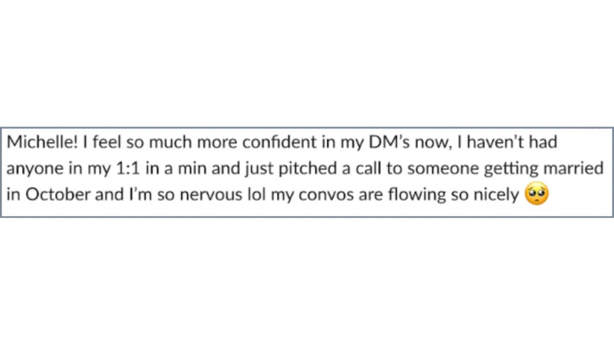 She is finally confident in her DMs from never talking to anyone ever and is having real conversations with leads.